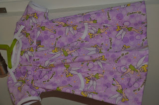 Det til høyre på bildet er utallige små prøvelapper som de sendte med av stoffene sine. Nederst til venstre ser dere grunnen til kjøpet, Tingeling! Hanna er Tingelingfan og det er ikke så lett å finne stoff med Tingeling på. Det er dog lite stretch og det er litt hardt, men noe får jeg vel ut av det, må bare tenke litt. Det er jo litt begrensa hvor mange kjoler en treåring trenger.... eller?? ;) De andre to stoffene er mykere og mer stretchy, det øverste blir nok body til lillemor :)
